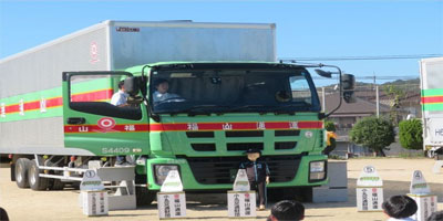 Fukuyama Transporting Co., Ltd. and Public Interest Incorporated Foundation Komaru Koutsu Foundation held a traffic safety class for 115 first graders of Fukuyama Municipal Toho Junior High School in Hiroshima Prefecture on October 10.