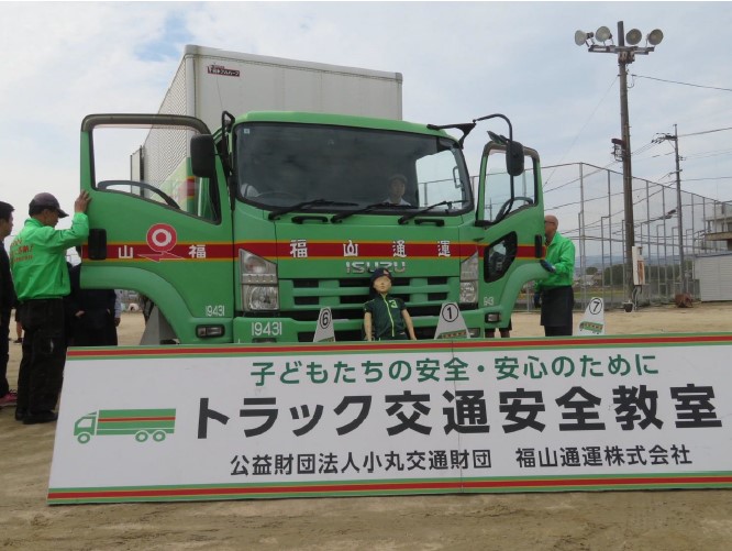 Fukuyama Transporting Co., Ltd. (Head office: Fukuyama City, Hiroshima Prefecture; Chairman: Shigehiro Komaru) and Public Interest Incorporated Foundation Komaru Koutsu Foundation (Chief Director: Shigehiro Komaru) held a traffic safety class for 110 students of Fukuyama Municipal Kanae Elementary School in Hiroshima Prefecture on November 12.