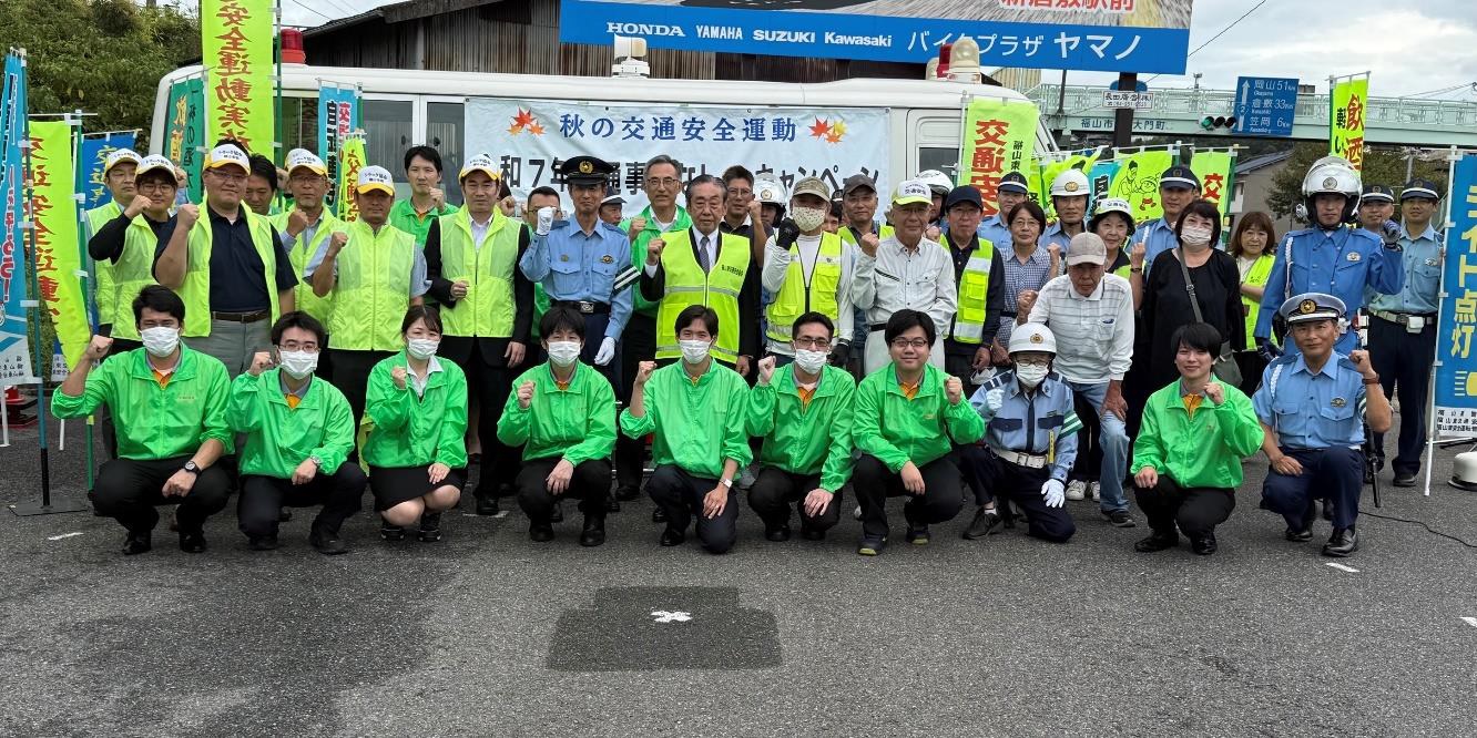 Fukuyama Transporting Co., Ltd. (Head Office: Fukuyama City, Hiroshima Prefecture; Chairman: Shigehiro Komaru) and the Komaru Koutsu Foundation (Chief Director: Shigehiro Komaru) held gTraffic Accident-Free (Jiko-Nashi) Campaignh on September 29 in Fukuyama City, Hiroshima Prefecture. This event was organized as part of the national Autumn Traffic Safety Campaign, in cooperation with the Hiroshima Prefectural Fukuyama Higashi Police Station and Fukuyama Higashi Traffic Safety Association. It marks the ninth time the campaign has been held in Fukuyama City.