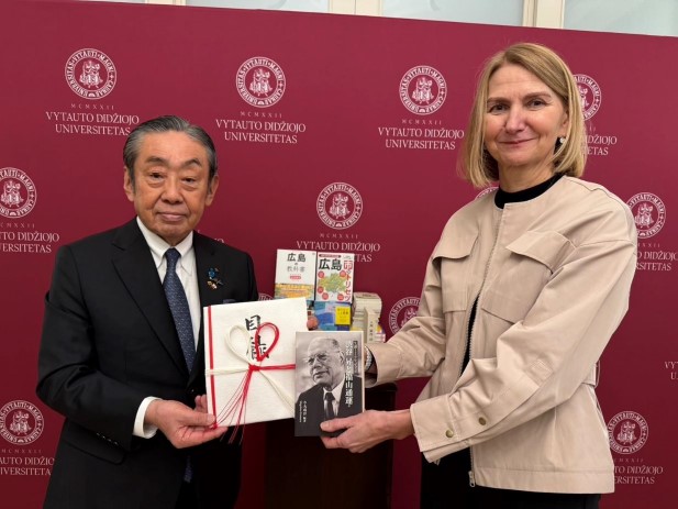 (From left to right: Chief Director Komaru and Prof. Dr. Ineta Dabasinskiene, Rector of the Vytautas Magnus University)